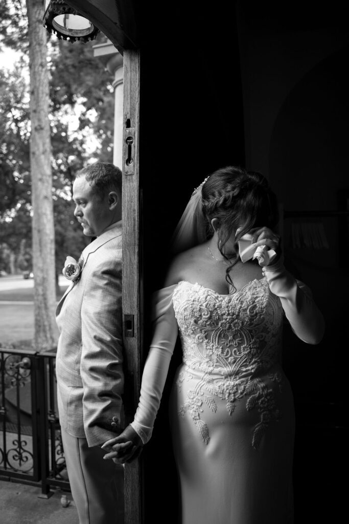 Before the ceremony, Amber and Jay headed to a small chapel on site for a first touch. They did not see each other, but they shared a quiet moment holding hands and taking everything in before walking down the aisle. It was intimate and emotional in a way that felt very them.