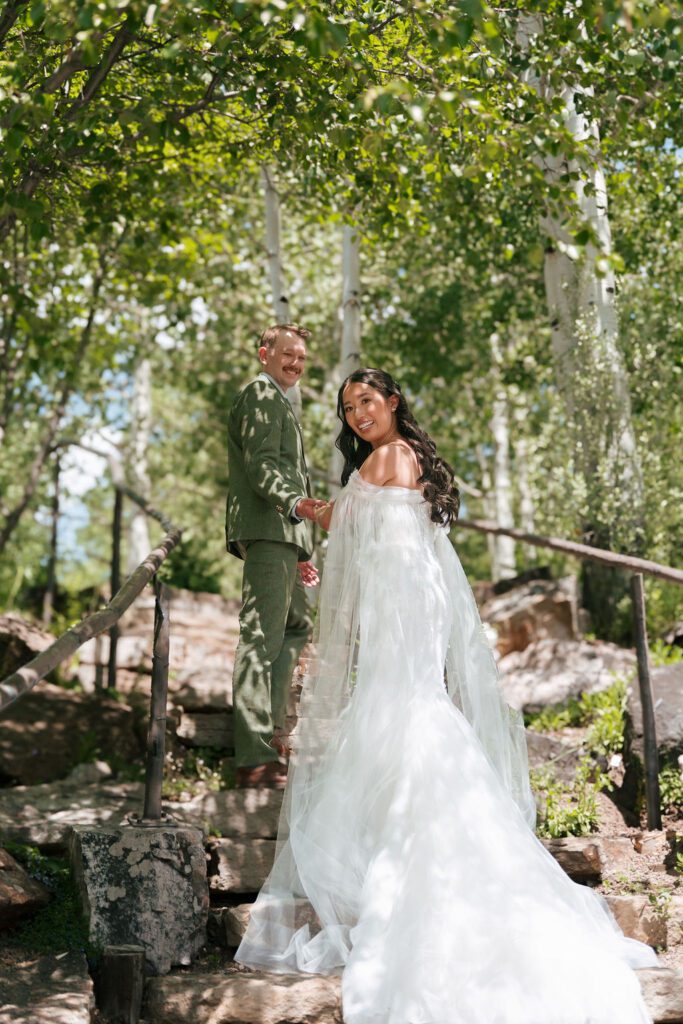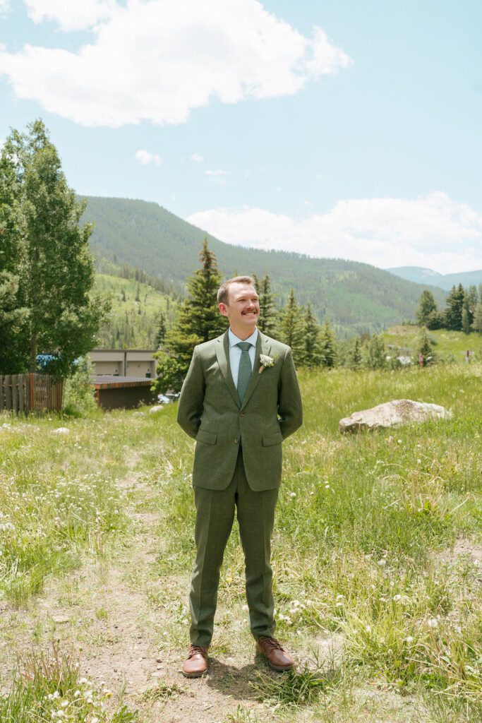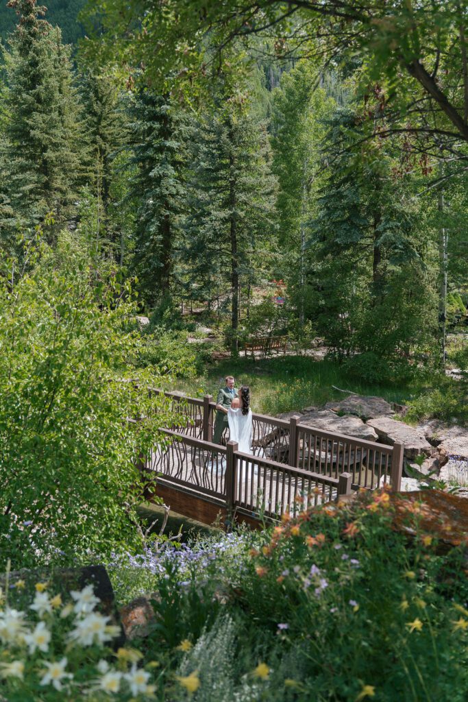 Cindy and Andrew chose to see each other for the first time at the Vail Botanic Garden, a quiet and intimate setting surrounded by greenery. Their first look was emotional without being performative, one of those moments that felt private even while being documented.