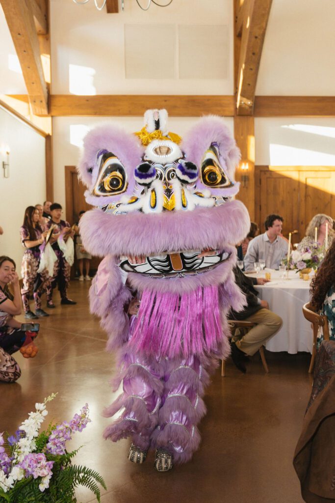 One of the most memorable parts of the day came during the reception, when Cindy and Andrew surprised their guests with a traditional dragon dance to honor Cindy’s Vietnamese heritage. As drums filled the room, the dragon moved through the space, weaving between tables and drawing guests into the experience. It was joyful, energetic, and completely unforgettable.